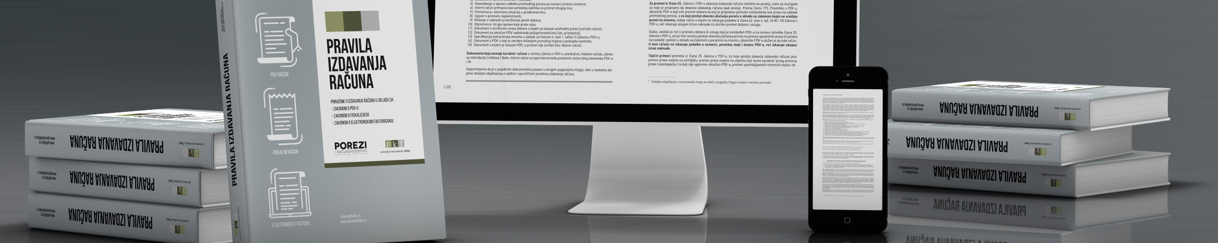 Povodom početka primene novih pravila izdavanja računa u skladu sa Zakonom o fiskalizaciji i Zakonom o elektronskom fakturisanju, Poreska kancelarija Tatić priredila je novo kapitalno izdanje. Reč je o instruktivnom priručniku u kojem smo na osnovu uporedne analize različitih propisa – dali detaljna objašnjenja o pravilima izdavanja računa, fiskalnih računa i elektronskih faktura.